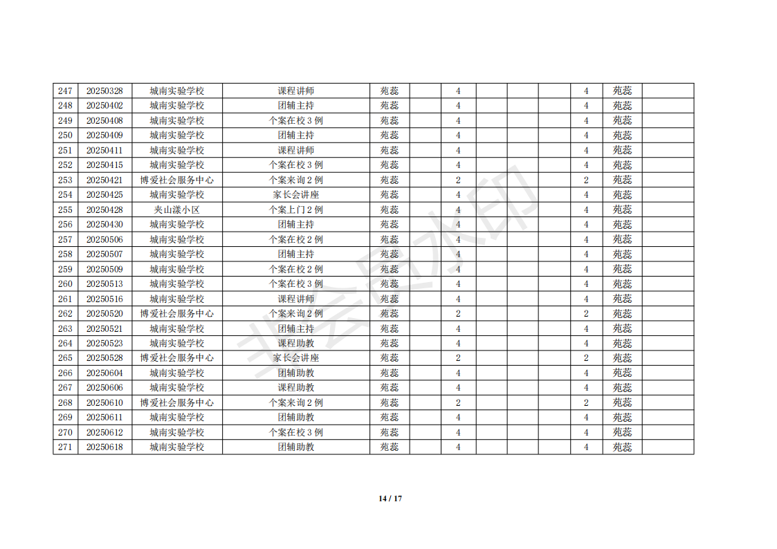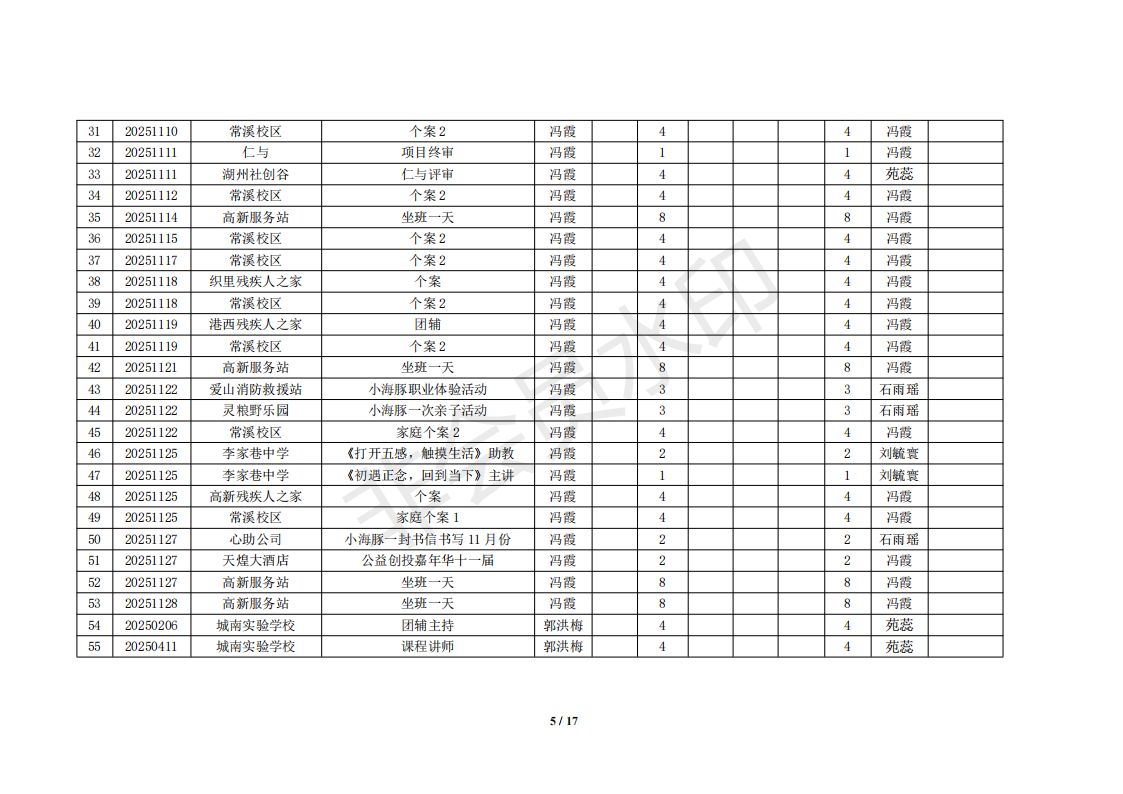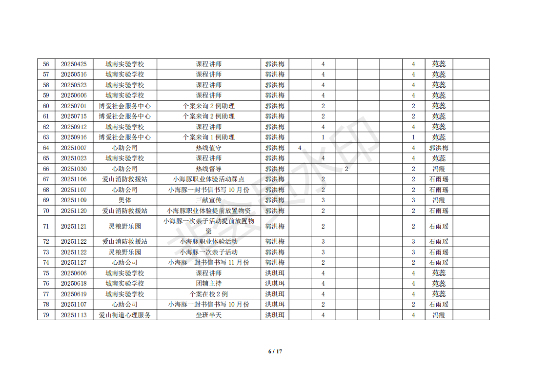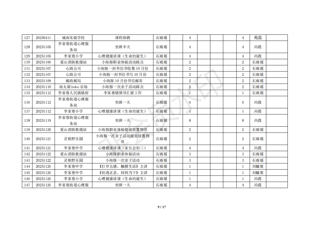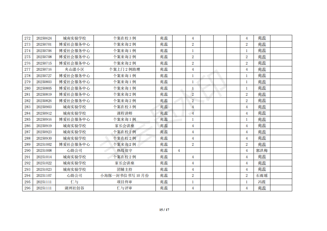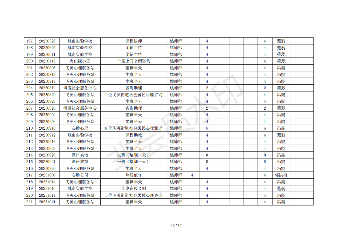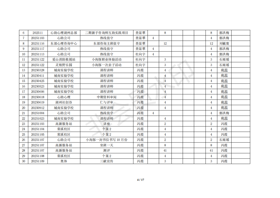 湖州红十字心理健康志愿服务队榜单11月统计