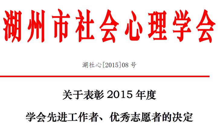 湖社心[2015]08号 关于表彰2015年度学会先进工作者、优秀志愿者的决定