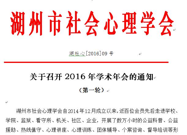 湖社心[2016]09号 关于召开2016年学术年会的通知