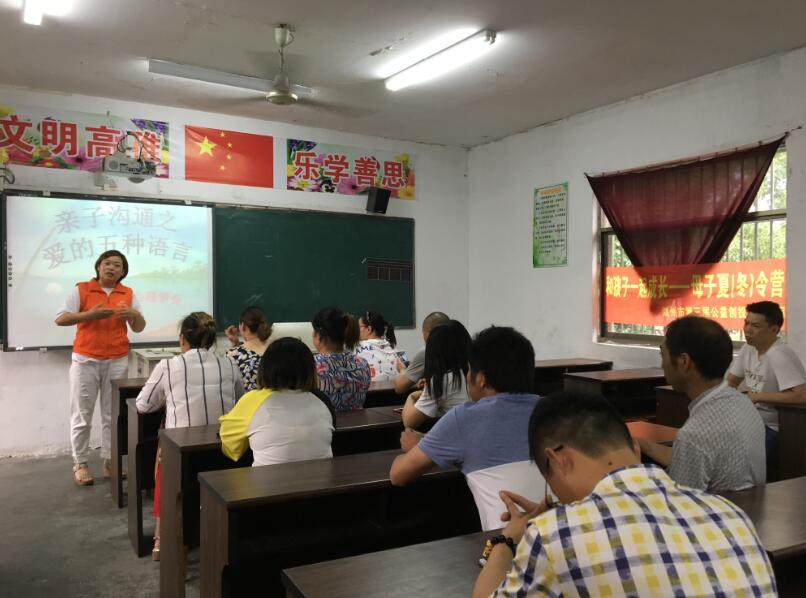 为了减轻孩子学习压力,缓解父母心情焦虑,改善亲子沟通关系,湖州市社会心理学会2名志愿者应湖州市良友学校邀请,于2018年5月18日在家长会上,与家长分享亲子沟通之爱的五种语言表达方式。冷老师通过心理健康讲座形式,普及心理健康知识,与家长分享爱的五种语言表达方式,通过案例分享传递如何更好地与孩子沟通。