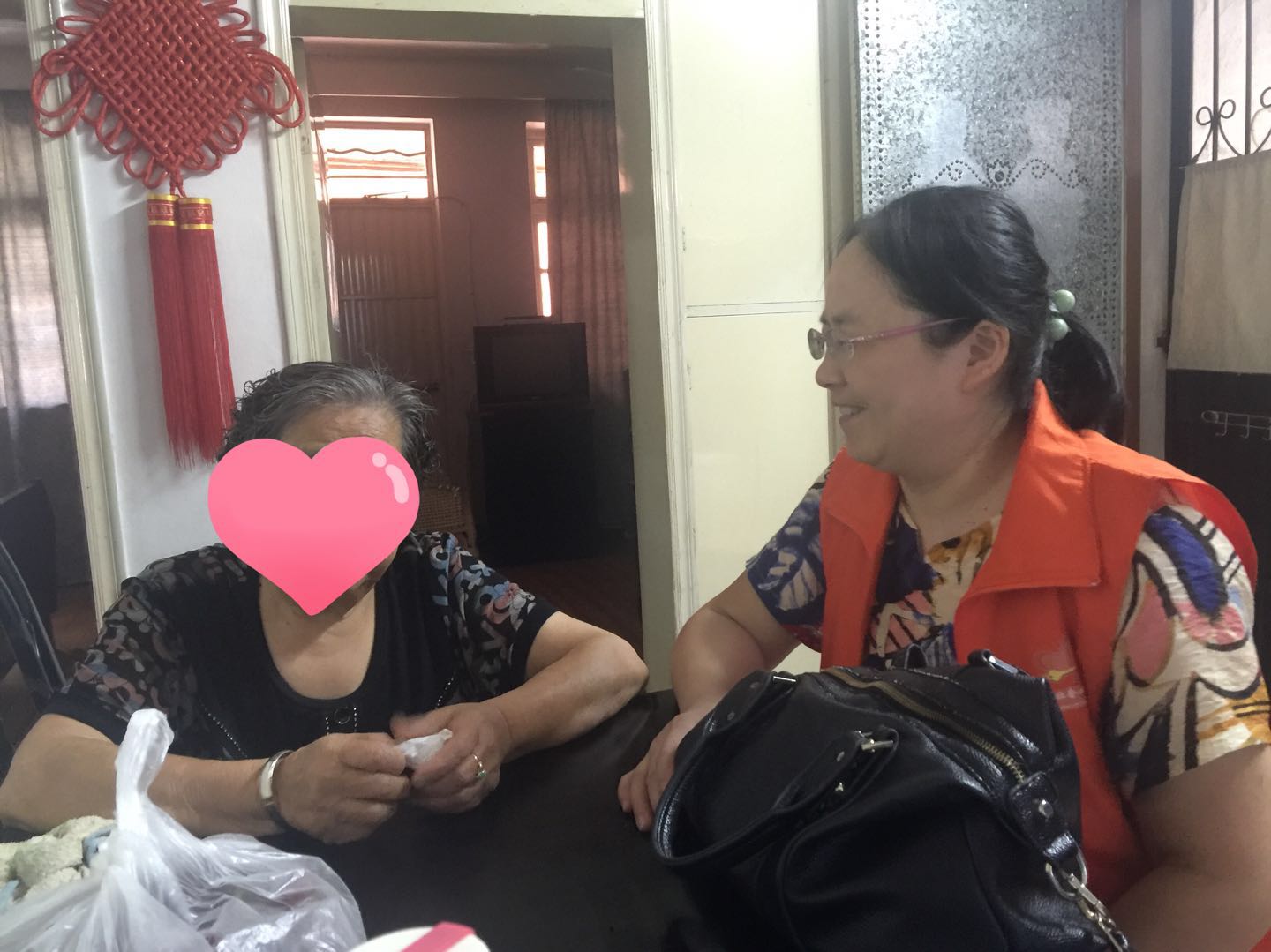 炎热天气,工作繁忙,家庭需要照顾,学校刚开学,一堆事儿,都没有关系,可以合理安排,因为还有一件更重要的事,一群更重要的人在我们社会心理学会志愿者的心上,9月2日,作为小学班主任的俞红叶老师和徐黎红老师抛开所有,只为心中牵挂的独居阿姨,上门暖心陪伴,量血压。