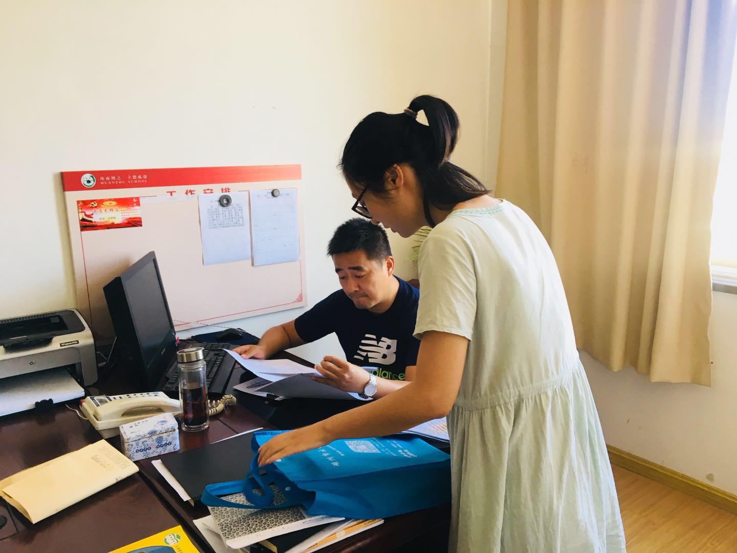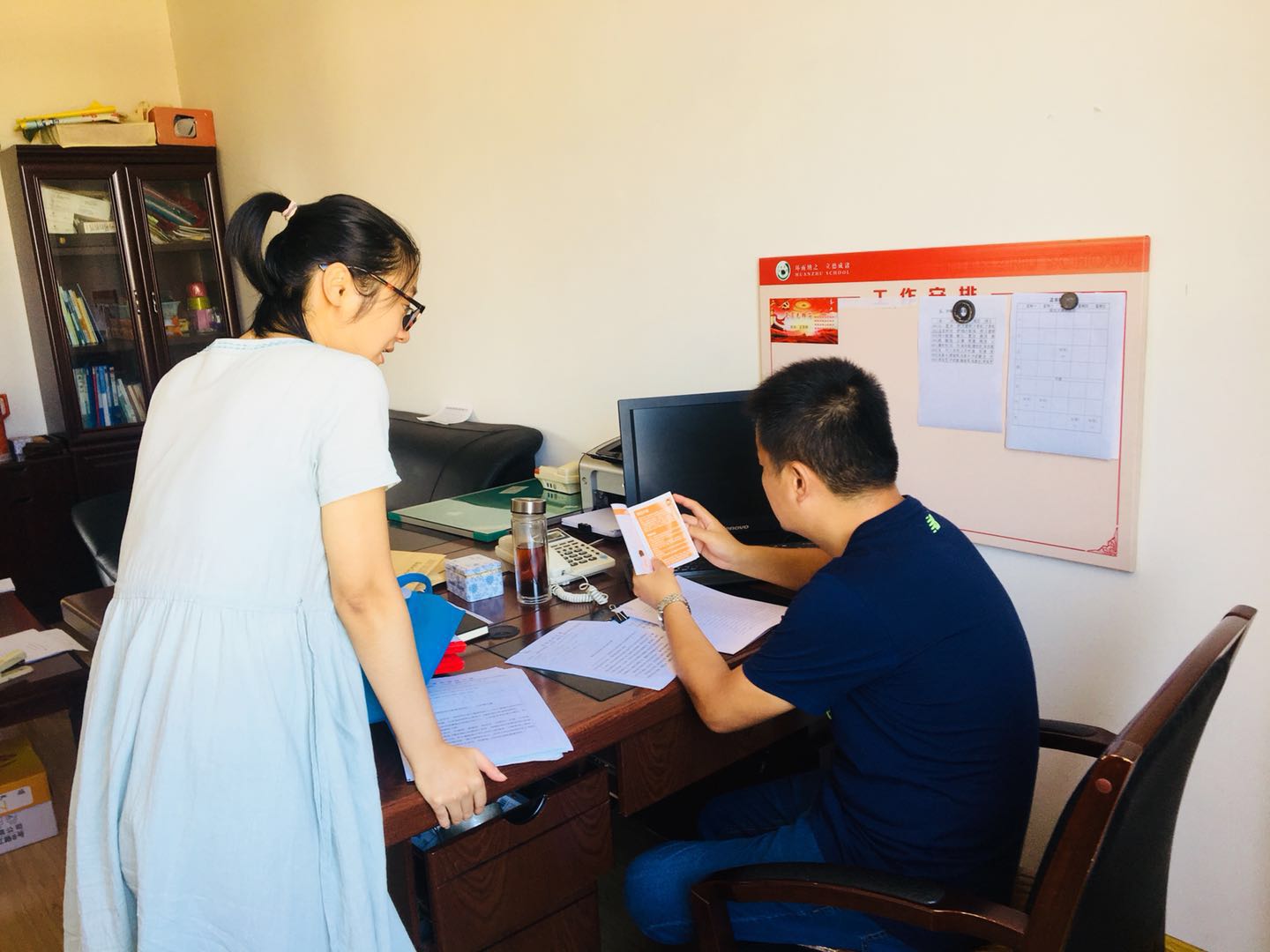 2018年8月30日, 春雨计划的两位志愿者来到环诸学校,和环渚学校的孟校长见面,就春雨计划在下半年的具体实施安排做了深入的讨论(2018年暑假期间,湖州市吴兴区的各学校校长调动比较大,需要重新对接)。