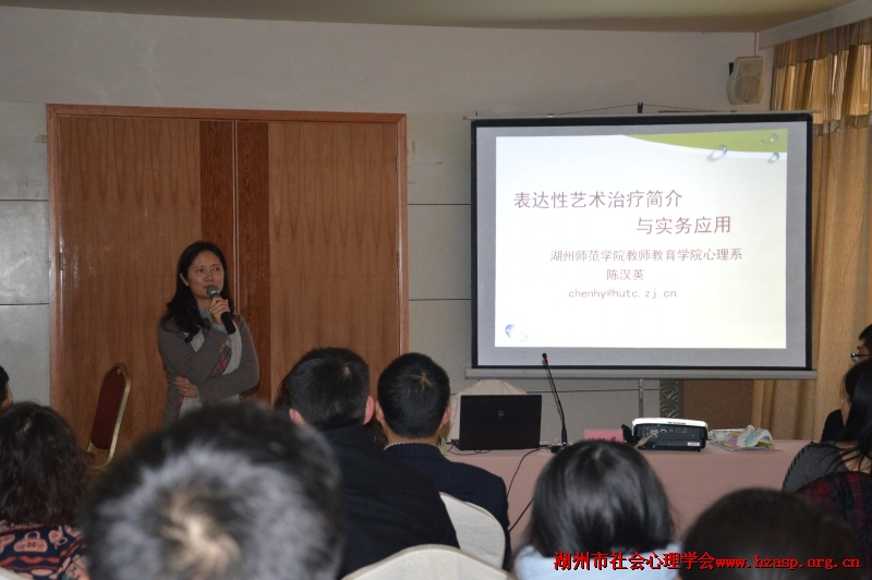12月21日,我会邀请湖州师范学院心理系主任陈汉英教授在湖州大厦17楼3号会议室举办了“表达性艺术治疗”工作坊。