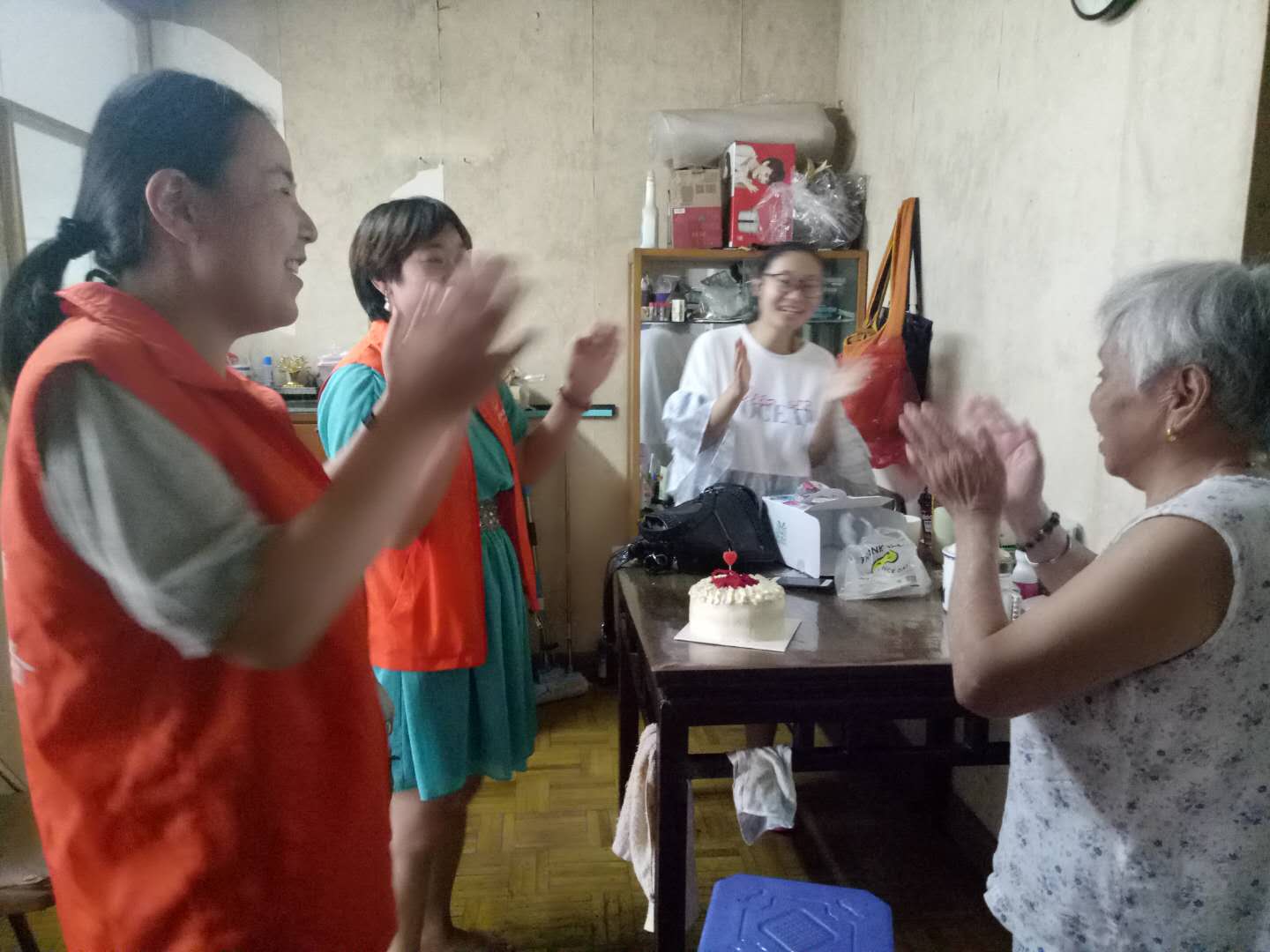 2018年9月21日在市陌二社区管阿姨家,一场不一样的生日聚会在开展着,由湖州市社会心理学会的志愿者冷存云,冯霞,姚师师,刘建明专门为管阿姨的生日送来蛋糕,点上蜡烛,唱着生日歌,阿姨感慨万千,我们真的有福气,赶上这么好的社会和政府。