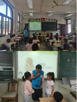 湖州市社会心理学会的主讲老师们在做了自我介绍后,给孩子们制定了规则,回答问题要举手,积极参与问答有奖品,在课堂上要遵守纪律。你认为好朋友是什么样?引出我们有一个一直陪伴我们的好朋友,那就是我们的身体,我们要保护它,爱护它。