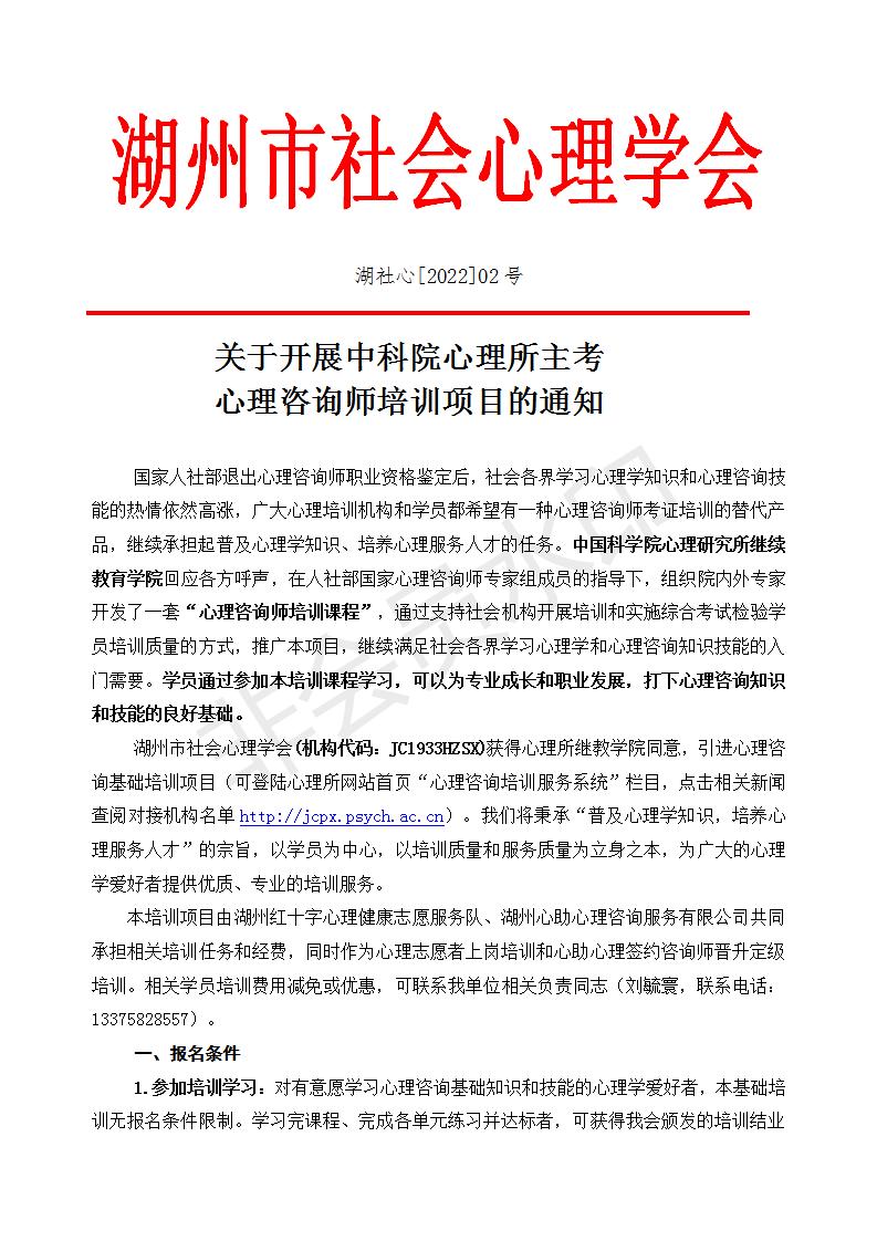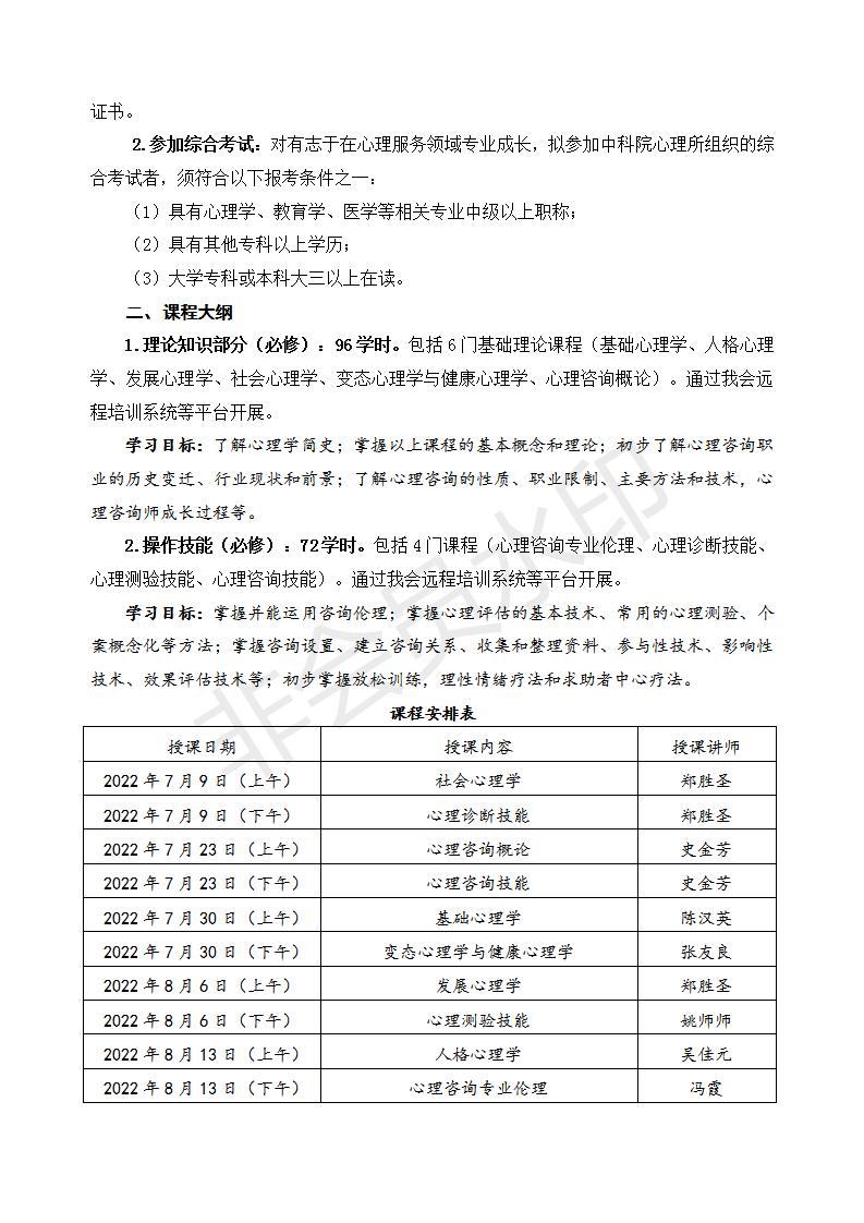 关于开展中科院心理所主考心理咨询师培训项目的通知