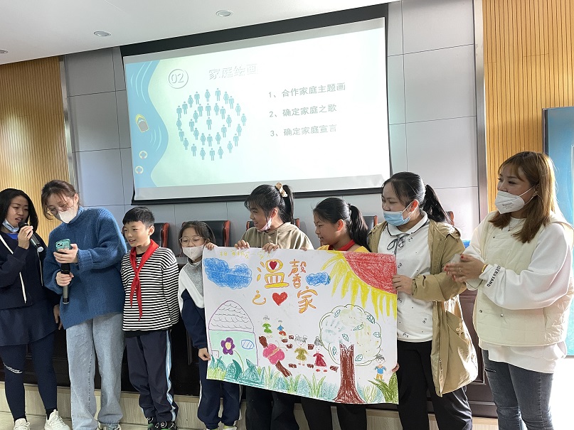 当天,在3位带组老师的带领下,家长们和孩子们进行了家庭绘画,确定家庭宣言和家庭之歌。因有时间规定,家长和孩子齐心协力,孩子们开动脑筋布局后,就你一笔我一笔有条不紊的画了起来。而旁边的家长有的鼓励着孩子“这个创意太好啦”;有的默默陪伴着关注着;有的家长忍不住指挥着孩子“往这边画…用这个颜色”……对于孩子来说,家长是指导者,是鼓励者,也是陪伴者。同时,家长们一起协助想家庭之歌,并将想法和建议告知孩子,由孩子们最终决定选用哪首。