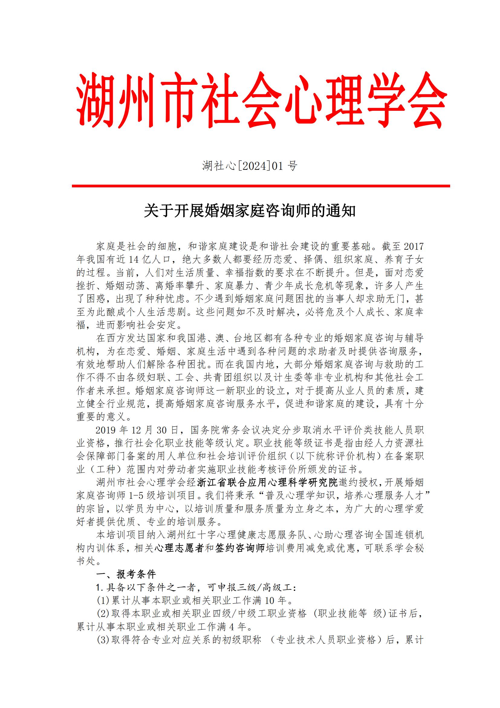 湖社心[2024]01号关于开展婚姻家庭咨询师培训的通知
