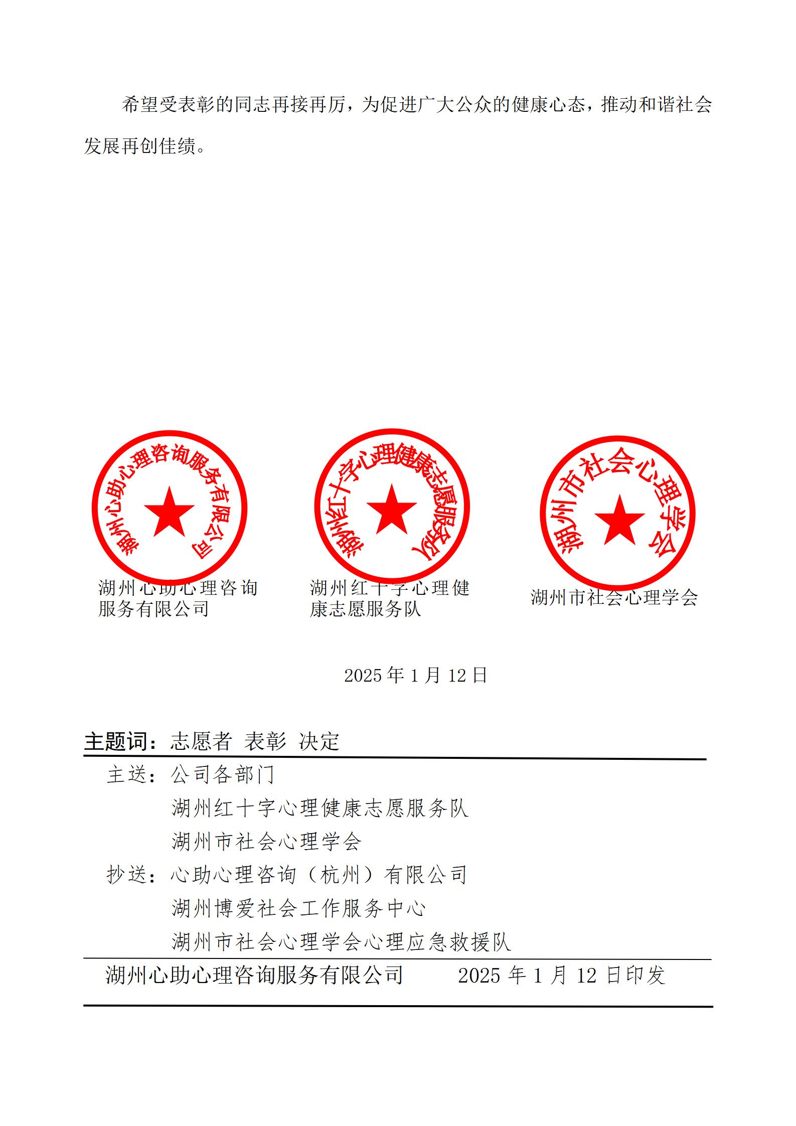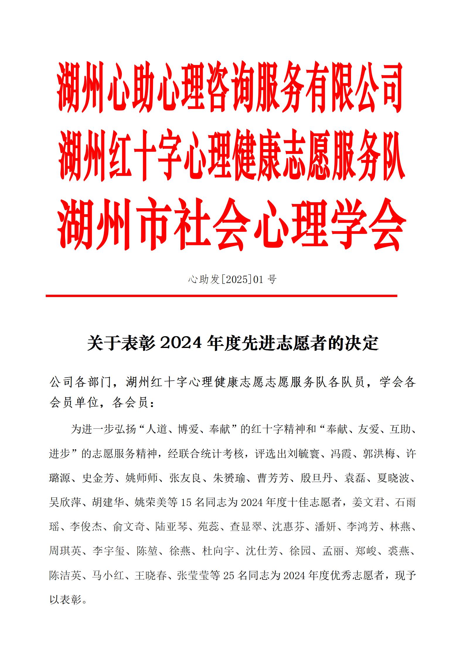 湖州市社会心理学会关于表彰2024年度先进志愿者的决定
